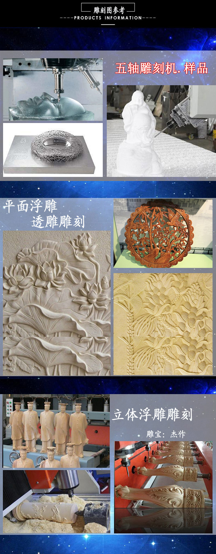 ◆ 加工幅面大,适合大型三维立体曲面加工。